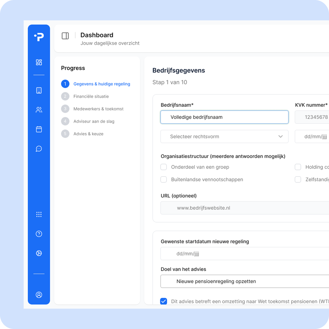 Het portaal ondersteunt communicatie, uitleg en vastlegging rondom keuzes, zonder dat dit extra druk legt op het advieskantoor.